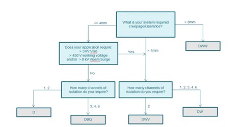 After narrowing down the digital isolator specifications, the next step needed to consider is different packaging options. Packages can make a big difference in isolation because the package size and characteristics directly affect the high voltage performance of the device. When choosing the right package, some of the same high voltage requirements discussed above (creepage distance, clearance, working voltage, surge voltage, isolation withstand voltage) may come into play. Larger packages with larger creepage distances and electrical clearances will allow the use of higher isolation voltage specifications. If using a smaller package option can meet your regulatory requirements at the same time, you can consider using this option to help save board space and cost. In addition, it is necessary to consider how many isolating channels your communication interface needs because the higher number of channels will determine which package type can be used.