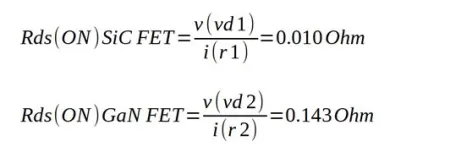 The calculation of the RDS(on) of both components is carried out during the on state of the devices by carrying out the following equations: