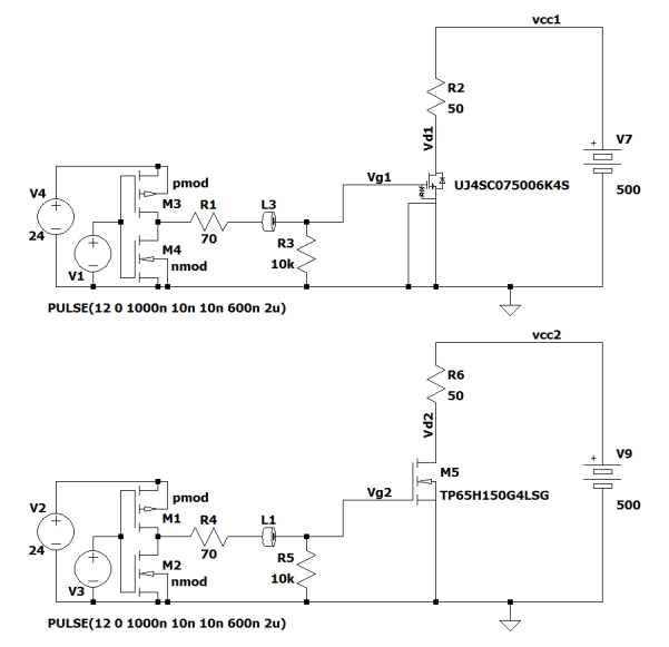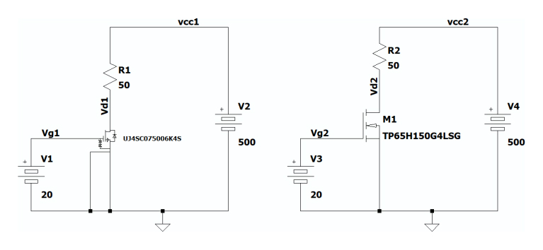 UnitedSiC’s UJ4SC075006K4S SiC FET MOSFET and Transphorm’s TP65H150G4PS GaN FET MOSFET for simulations