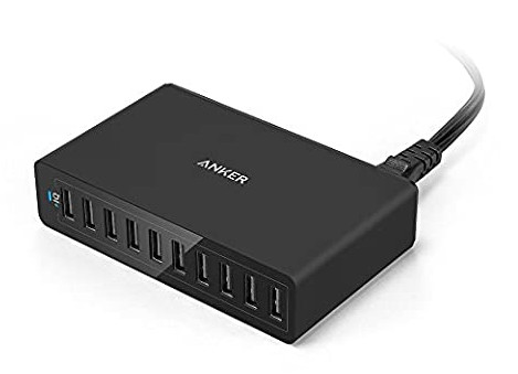 Users can now successfully choose Anker wall chargers, equipped with many USB ports and with Power IQ fast-charging technology, compatible with iPhone, iPad, Samsung Galaxy, and others. The proprietary Anker Power IQ technology automatically identifies the device and maximizes its charging speed, offering the fastest-possible solution. Through the numerous USB ports, you can charge smartphones and tablets simultaneously. Some models also have 10 USB ports, such as the Anker PowerPort 10 model shown in Figure 5. This type of charger allows you to generate a lot of power for a simultaneous charge of a large number of devices. In addition, the numerous overcurrent and high-temperature protections keep the devices safe, with high efficiency (DOE 6). They are compatible with iPhone, iPad, and Android smartphones and tablets (including the Nexus 7).