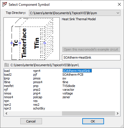 Figure 1: The SOAtherm-HeatSink model in the main LTspice library