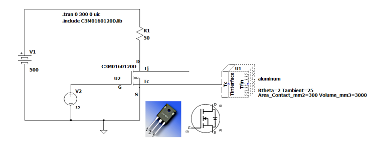 Figure 2 shows an example of an application that allows the use of a SiC MOSFET with an electronic switch function. The model of the device used is the C3M0160120D, with the following characteristics: